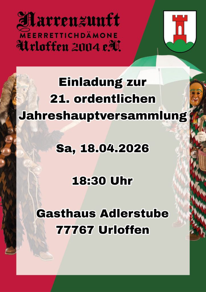 Am 18. April 2026 um 18:30 Uhr findet unsere diesjährige Jahreshauptversammlung statt.