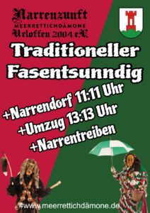 « Alle Veranstaltungen Dorfumzug – Narrenzunft Meerrettichdämone Urloffen 2004 e.V. Februar 15, 2026 @ 13:13 « Traditioneller Fasentsunndig – Narrenzunft Meerrettichdämone Urloffen 2004 e.V. Jubiläumsumzug – Narrenzunft Aichhalden e.V. » Zum Kalender hinzufügen Google Kalender iCalendar Outlook 365 Outlook Live Details Datum: Februar 15, 2026 Zeit: 13:13 Veranstalter Narrenzunft Meerrettichdämone Urloffen 2004 e.V. Veranstalter-Website anzeigen Veranstaltungsort Dorfmitte Hauptstraße Urloffen, Baden-Württemberg 77767 Germany Google Karte anzeigen